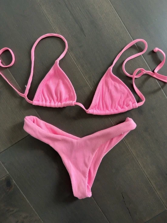 Pink Ribbed Bikini 👙