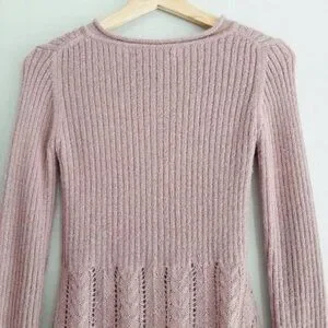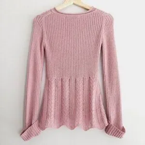 Very cute pink ribbed knit cardigan with peplum hem from Sandra Angelozzi