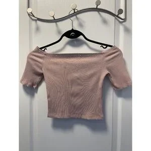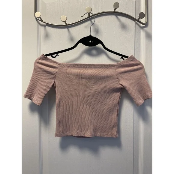 Pink Ribbed Off The Shoulder Top