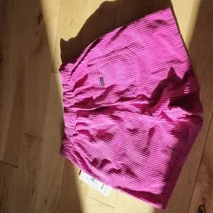 Vibrant pink ribbed shorts with a comfortable fit. Features a pocket detail.