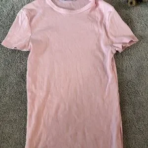 Casual pink ribbed t-shirt. Soft and comfortable fabric.