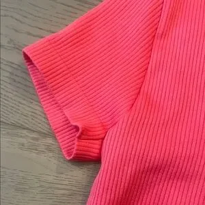 Bright pink ribbed t-shirt perfect for women. Soft and comfortable for everyday wear.