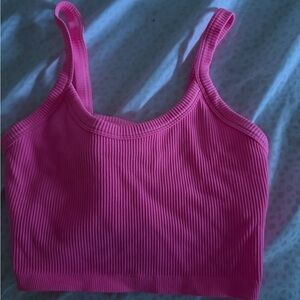 Elevate your style with this vibrant pink ribbed crop top. Perfect for casual outings or layering, this top offers both comfort and fashion. Size medium, has built in sports bra!