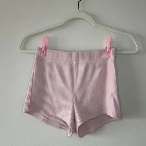 Comfortable and stylish pink ribbed shorts perfect for casual wear.