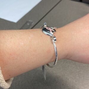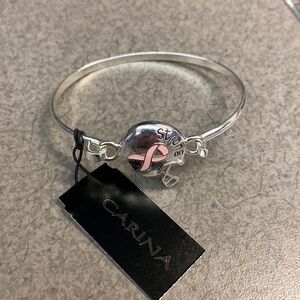 Pink Ribbon Hook Cuff Closure Bracelet- Breast Cancer Awareness For Women NWT