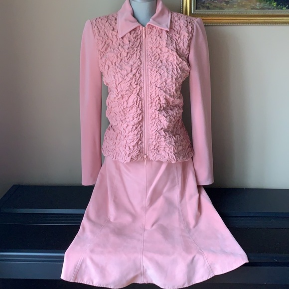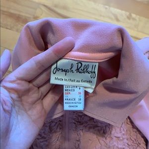 Pink blazer and matching skirt with zipper closing. Designed by Joseph Ribkoff, made in Canada. Price is for both pieces.