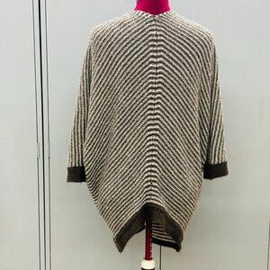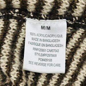 Pink Rose Acrylic Open Front Cardigan Size Medium Brown Cream Striped Knit
