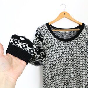 *Pink Rose Black and White Knitted Long Sleeve Dress