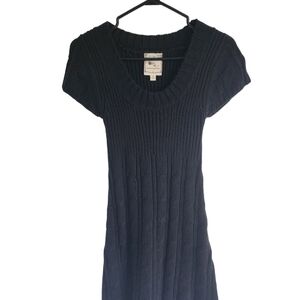 Pink Rose Cable Knit Capped Sleeve Sweater Dress. Ribbed Bodice Cabled Skirt.