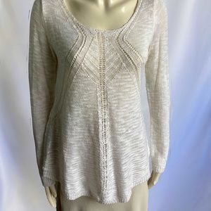 Keep comfortable and stylish with this Pink Rose Cream Crochet Long Sleeved Sweater. Featuring a beautiful cream hue and delicate crochet detailing, this sweater is perfect for any occasion.
