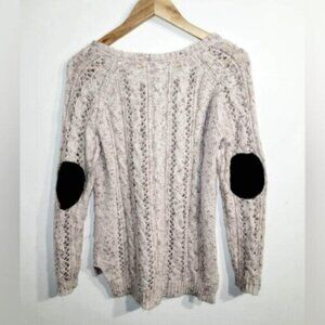 Pink Rose Equestrian style Loose Knit Patch Sweater- Size Small