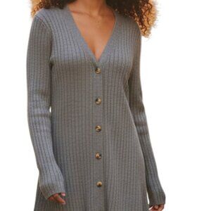 NWT Grey Ribbed Knit Faux Button-Front Cardigan Sweater Midi Dress. Perfect for cozy fall and winter styling. This versatile long-sleeve sweater dress can be worn buttoned as a dress or open as a long cardigan.