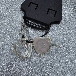 Pink Rose Quartz Crystal Sphere w/ Angel Wings Locket Necklace - new, never been worn.