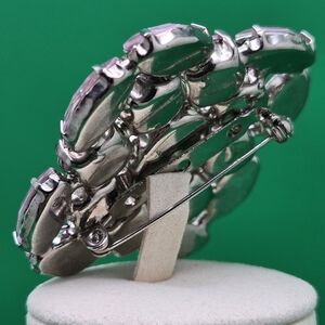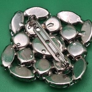 Pink Rose Raspberry Rhinestones Brooch Large Square Pin