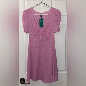Elegant pink dress with a stylish ruched front. Perfect for any occasion.