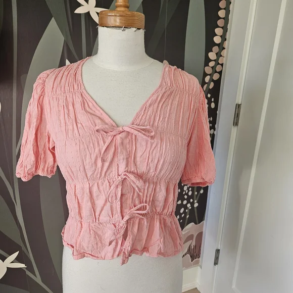 Elevate your style with this Oliver Bonas chic pink ruched top. Perfect for any occasion, this top offers a flattering fit and a touch of elegance.