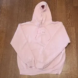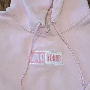 Pink rude vogue sweater. Size M. Used condition. Stains throughout (see photos)