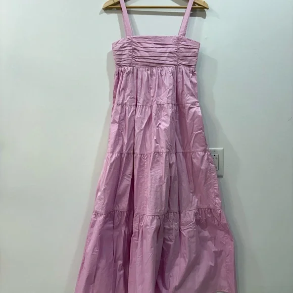 Elegant pink maxi dress with a ruched bodice. Perfect for summer occasions & vacation.
