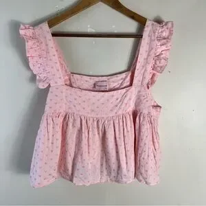 Enjoy comfort and style with this pink ruffle pajama set. Perfect for a cozy night's sleep.