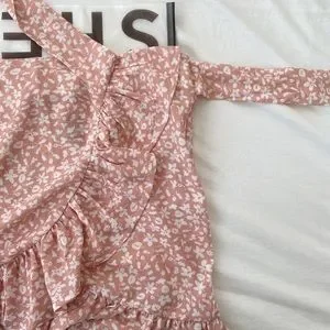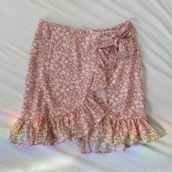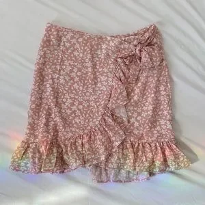 cutest pink ruffle skirt, with white floral designs. reminds me of brandy melville BNWOT (it didn’t come with one) SIZE: S