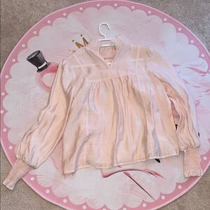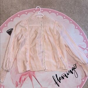Elegant pink blouse with ruffle details. Perfect for any occasion.