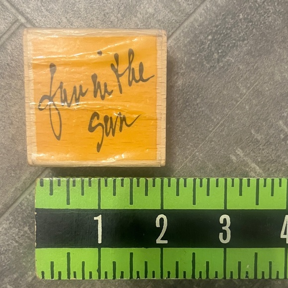 Wooden stamp featuring a pink script design. Ideal for crafting projects.