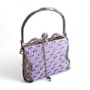 Pink Sequin White Lace Princess Two Way Evening Mini Hand Bag Crossbody