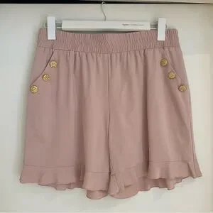 These high waist shorts feature a soft pink hue and a flowy silhouette, perfect for a relaxed and stylish look. The elastic waistband ensures comfort, while the ruffled hem adds a feminine touch. Ideal for casual outings, these shorts offer both style and ease.