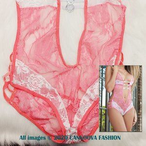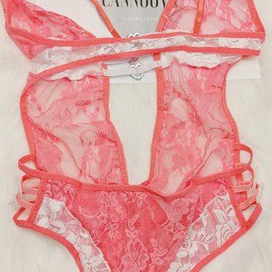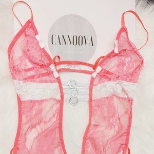 Pink Siamesed One-piece Belt Upper Bra Gstring Fin