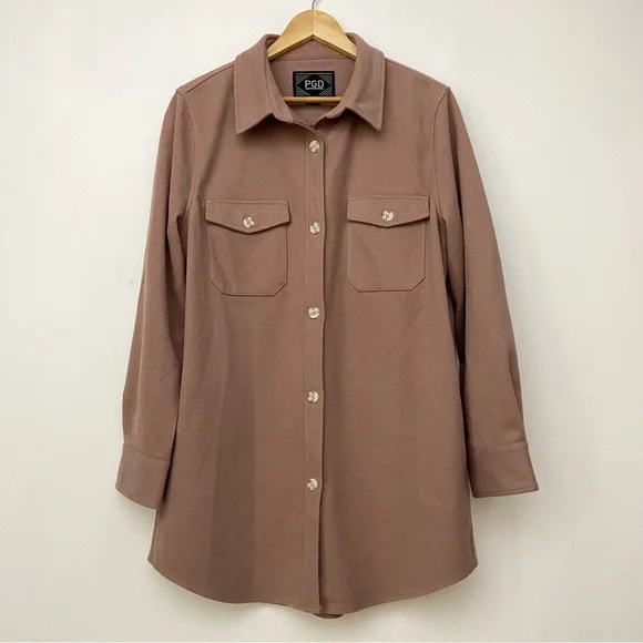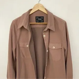 Dusty rose shacket in great condition. Warm cozy cotton-blend fabric with buttons and 4 pockets. Measurements pictured.
