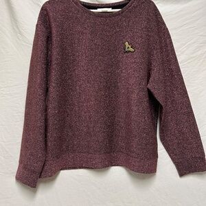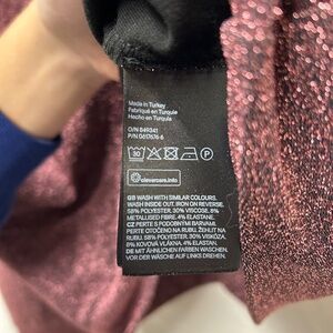 This H&M pink sparkly sweater combines a soft, glittery knit with a whimsical dragonfly patch, adding a touch of charm to a classic silhouette. Crafted from a comfortable blend of materials, it offers a cozy fit suitable for various occasions. Whether paired with jeans for a casual look or dressed up with a skirt for a more polished ensemble, this sweater ensures both comfort and style.