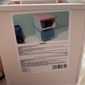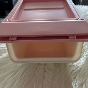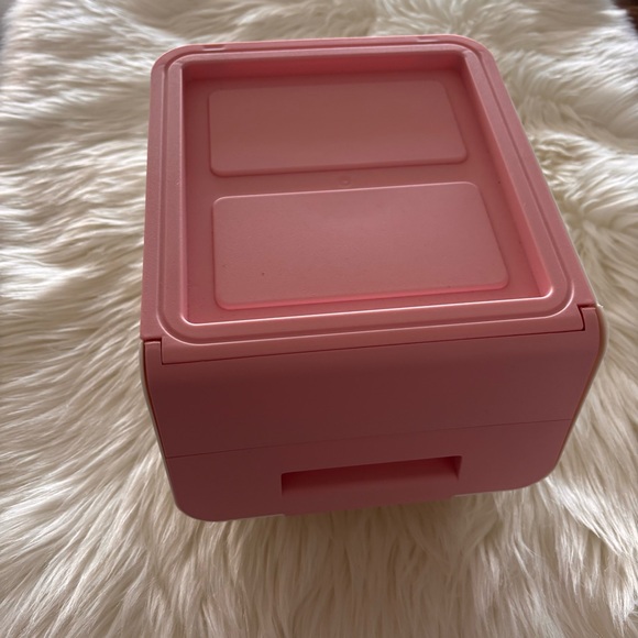 Compact pink stackable storage box for tidy organization. Durable plastic design keeps items neatly stored. Easy to stack and pull-open drawer for quick access. Stylish pink color fits modern decor.