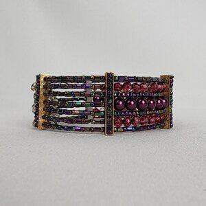 Pink Stacked Beaded Cuff Bracelet