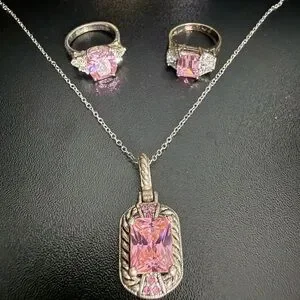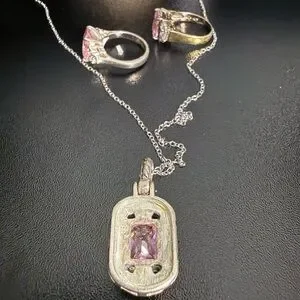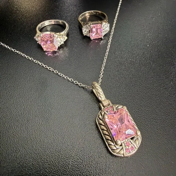 The pendant and the other ring are costume jewelry. Beautiful setting. Very sparkly 💎