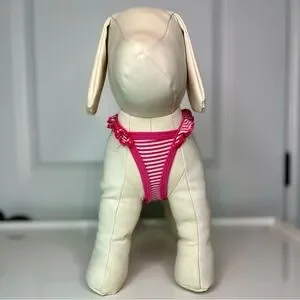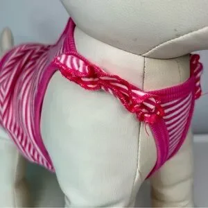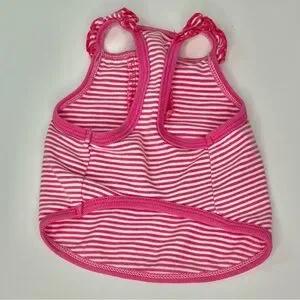 Stylish pink striped dog tank top with adorable ruffle details. Perfect for small pets.