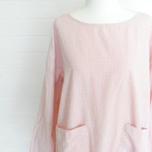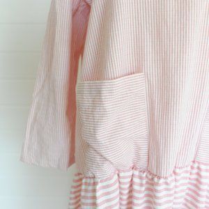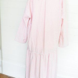 Women's pink striped bohemian style dress. Cozy, comfortable, soft fabric, pockets in front and mermaid style fit, but very relaxed. Miss Look Brand size 2XL
