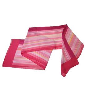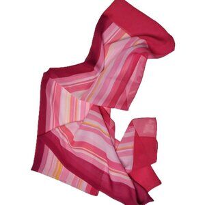 Shades of Pink , with white and yellow stripes in this pink lightweight long rectangular scarf