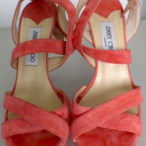 Pink Suede Open Toe Jimmy Choo Heels