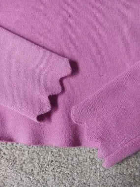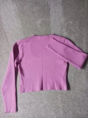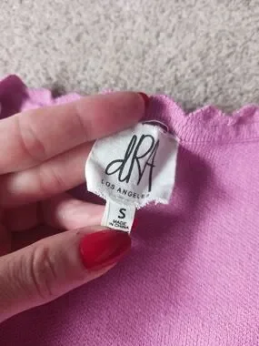 gorgeous pink cropped sweater with scalloped neckline and cuffs. Thick quality feel to the fabric. size small. brand is dRA Los Angeles