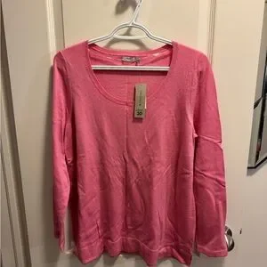 Soft pink sweater with a classic scoop neck. Perfect for casual wear. Still has tags. Very soft. Size large.
