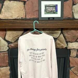 Light pink sweatshirt with motivational text on the back. Be your best. (Front is blank)