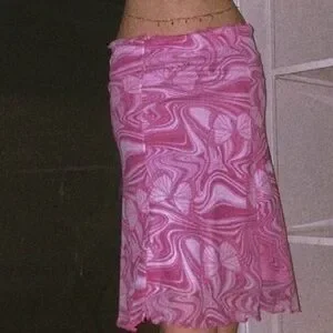 Stylish pink skirt with a swirl pattern. Perfect for casual outings.