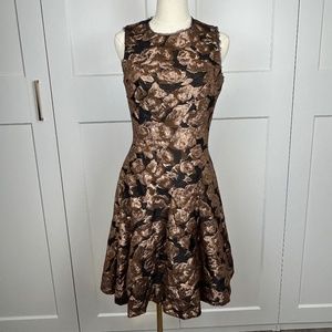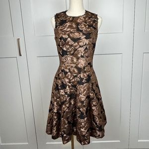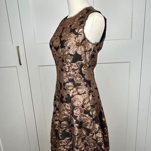 Alvina jacquard fit & flare dress in metallic bronze floral pattern.