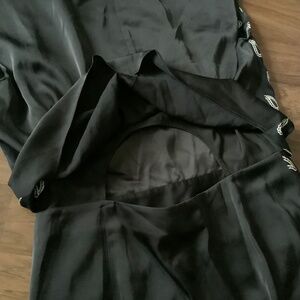 Asymmetric design with front slit, hidden back cut-out.