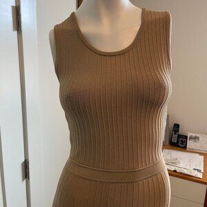 Pink Tartan Stretch Ballet Dress Fit & Flare Ribbed Viscose Nylon Camel/Tan XS