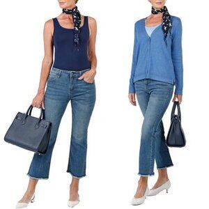 Elevate your style with this fun flare jean. Boasting a brand shank button and a pink bar tack on the pockets.