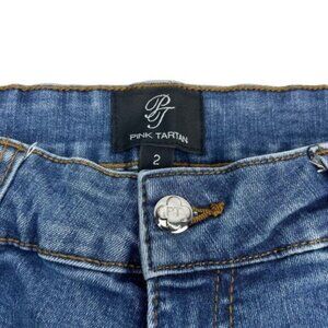 Pink Tartan Womens Flare Raw Hem Jean Size 2