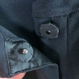 A black snap button front cardigan sweater from the brand Pink Tartan.