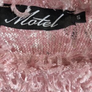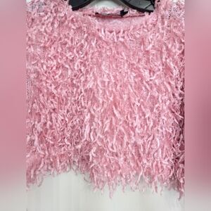 Super cute crop top, would fit xs-s, never worn. Elevate your style with this chic pink textured crop top. Perfect for a trendy and bold look.