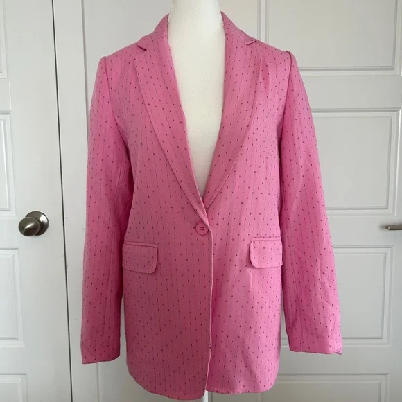 Oversized pink Catherine Malandrino blazer with blue stripe